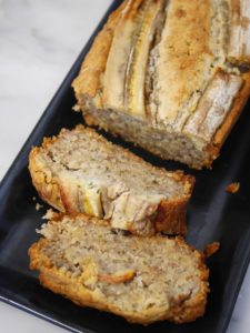 j’ai fait ce Banana Bread en moule de silicone individuel et la cuisson s’est faîte en seulement 20 minutes ils sont parfait et sucrés sans ajout de sucre !