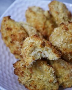 Cette recette est inspirée d’une recette trouvée sur 750 grammes. Des croquettes de chou fleur. J’ai trouvé l’idée très sympa et particulièrement sympa pour faire manger ce légume de manière déguisée aux plus petits ! Le rendu a un peu un aspect nuggets qui attirera probablement plus vos chères têtes blondes,