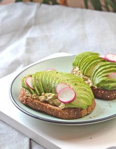 Faites grillez vos deux tranches de pain puis étalez dessus votre guacamole frais d’avocat. Enfin rajoutez vos lamelles d’avocat et les rondelles de radis.